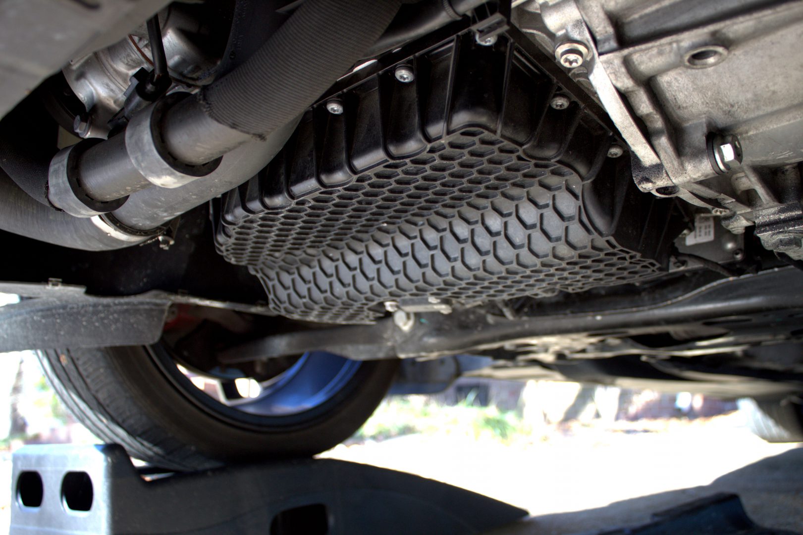 The factory plastic oil pan…